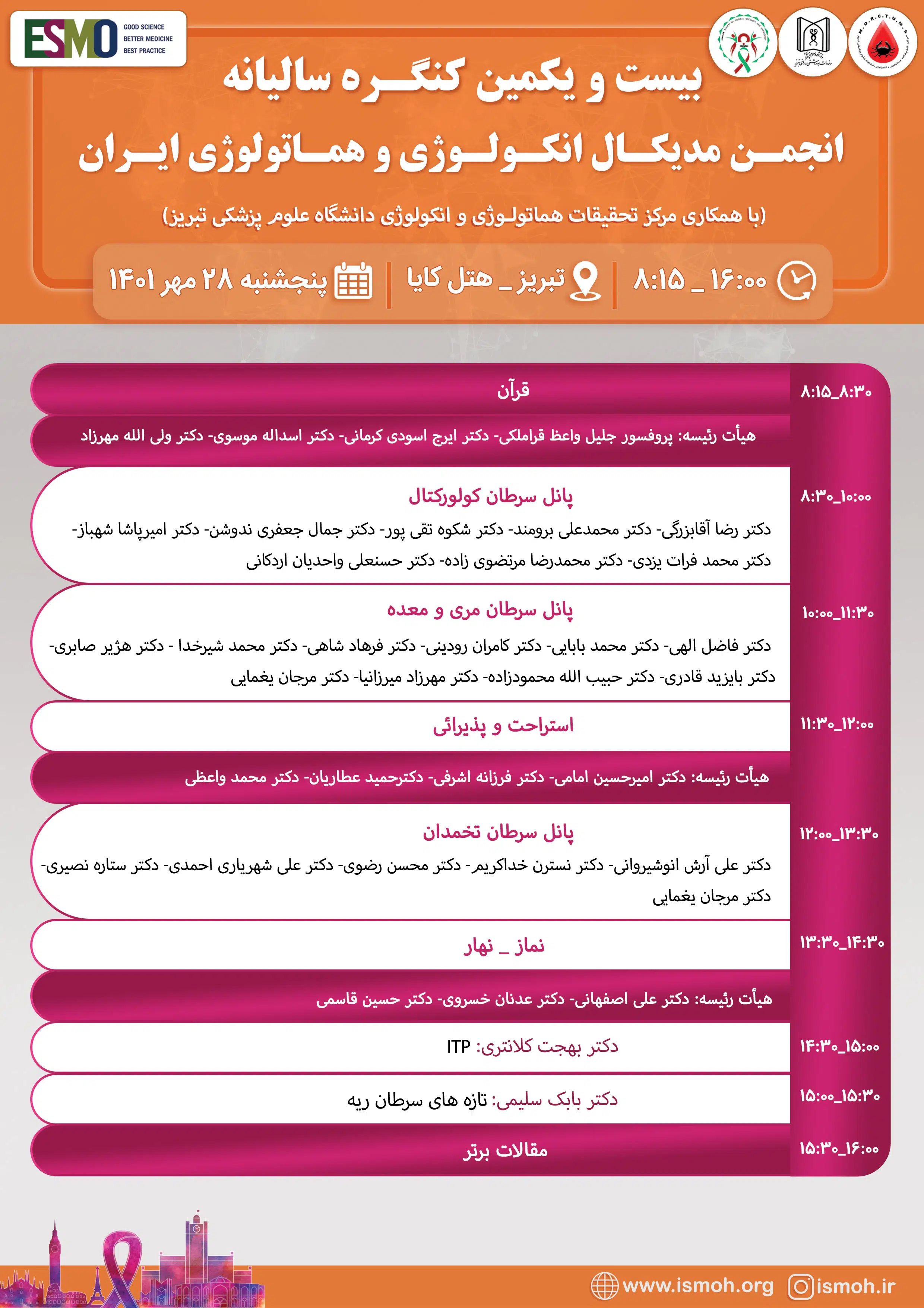 دسترسی به برنامه بیست و دومین کنگره سالیانه انجمن مدیکال انکولوژی و هماتولوژی ایران